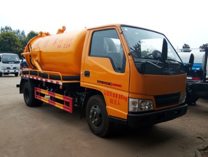 采用江鈴底盤制作,4X2驅(qū)動(dòng),單排駕駛室,可前翻,7.00R16鋼絲胎,油剎,五十鈴116馬力發(fā)動(dòng)機(jī),5檔變速箱,帶排氣制動(dòng),帶剎車間隙自動(dòng)調(diào)整,原廠ABS,前橋2.5噸,后橋4噸。 二、江鈴5方吸污車上裝配置: